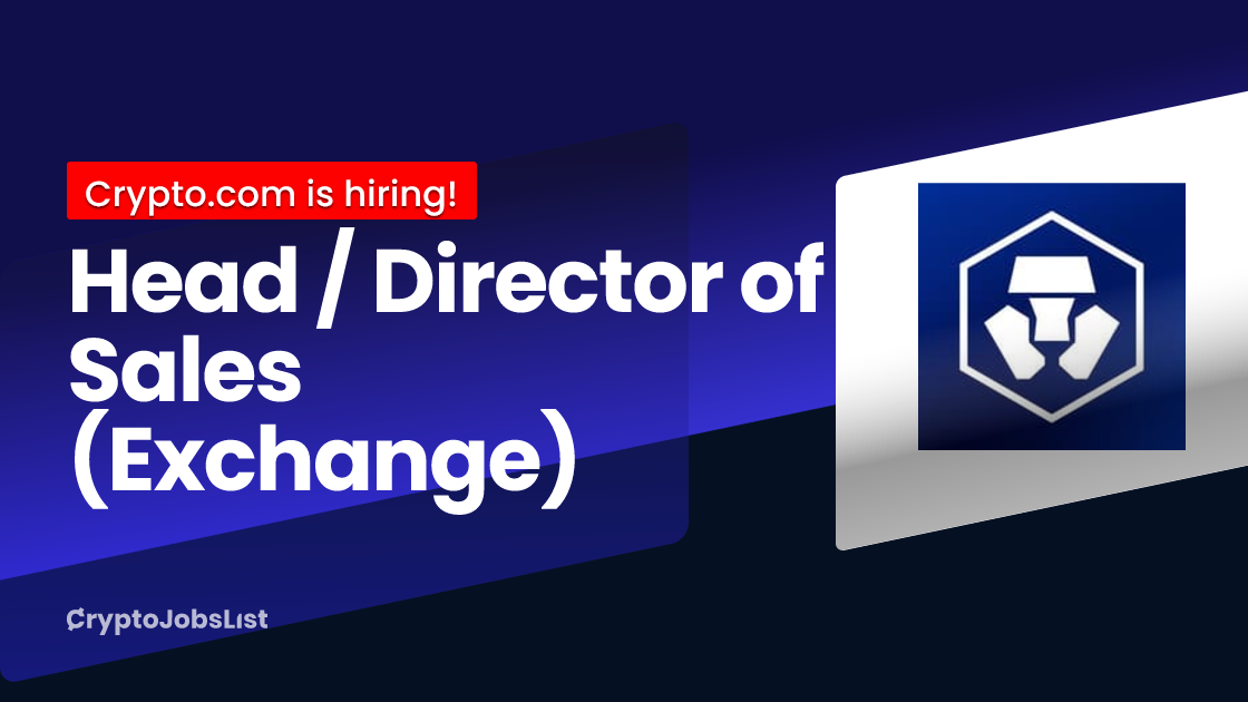 Tags: Web3 JobsBlockchain Web3 JobsCryptocurrency Research JobsBlockchain Trading JobsWeb3 Non Tech JobsBlockchain Remote JobsWeb3 Sales JobsCryptocurrency Exchange JobsBlockchain Business Development JobsCryptocurrency Compliance JobsCryptocurrency Content JobsWeb3 Security JobsWeb3 Director JobsBlockchain Community JobsBlockchain Data JobsBlockchain Talent Acquisition JobsCryptocurrency Finance JobsBlockchain Ai JobsBlockchain Full Time JobsAs the Head orDirector of Sales (Exchange), you will be the primary architect of Crypto.com’s institutional growth within the United States. In an industry where the boundaries between traditional finance and decentralized technology are blurring, you will identify and capture opportunities across an unlimited client landscape.This is a high-autonomy role designed for a "builder" who thrives on ownership. You won’t just be selling off-the-shelf products; you will collaborate with our global product teams to customize first-to-market solutions—ranging from credit and custody to bespoke trading instruments. You will have the full weight of the Crypto.com ecosystem behind you to turn your market insights into reality.